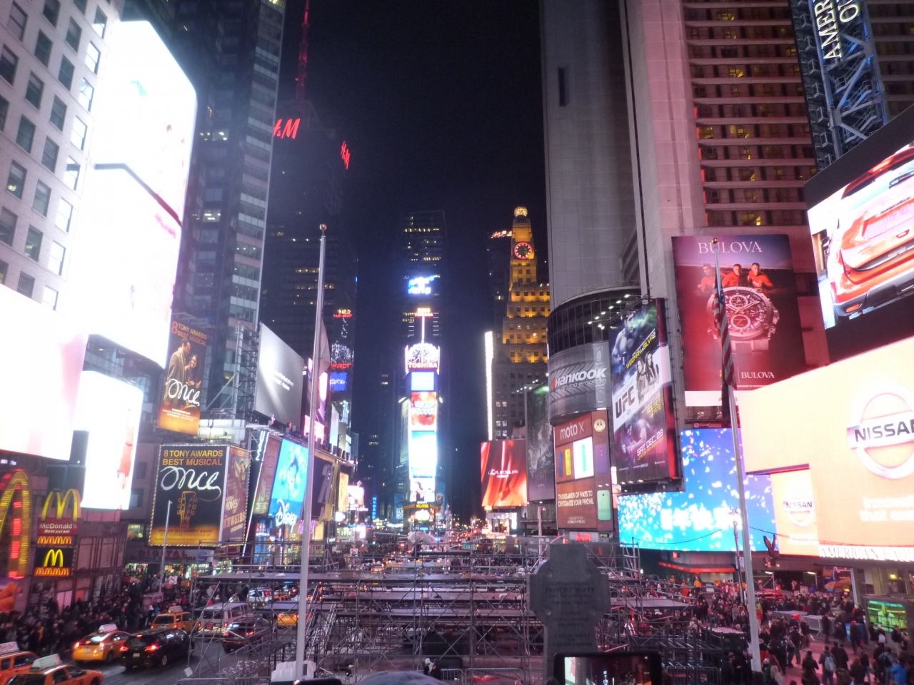 憧れのタイムズスクエアでの年越しに参加しようとしましたが、あまりの人ごみに断念。。