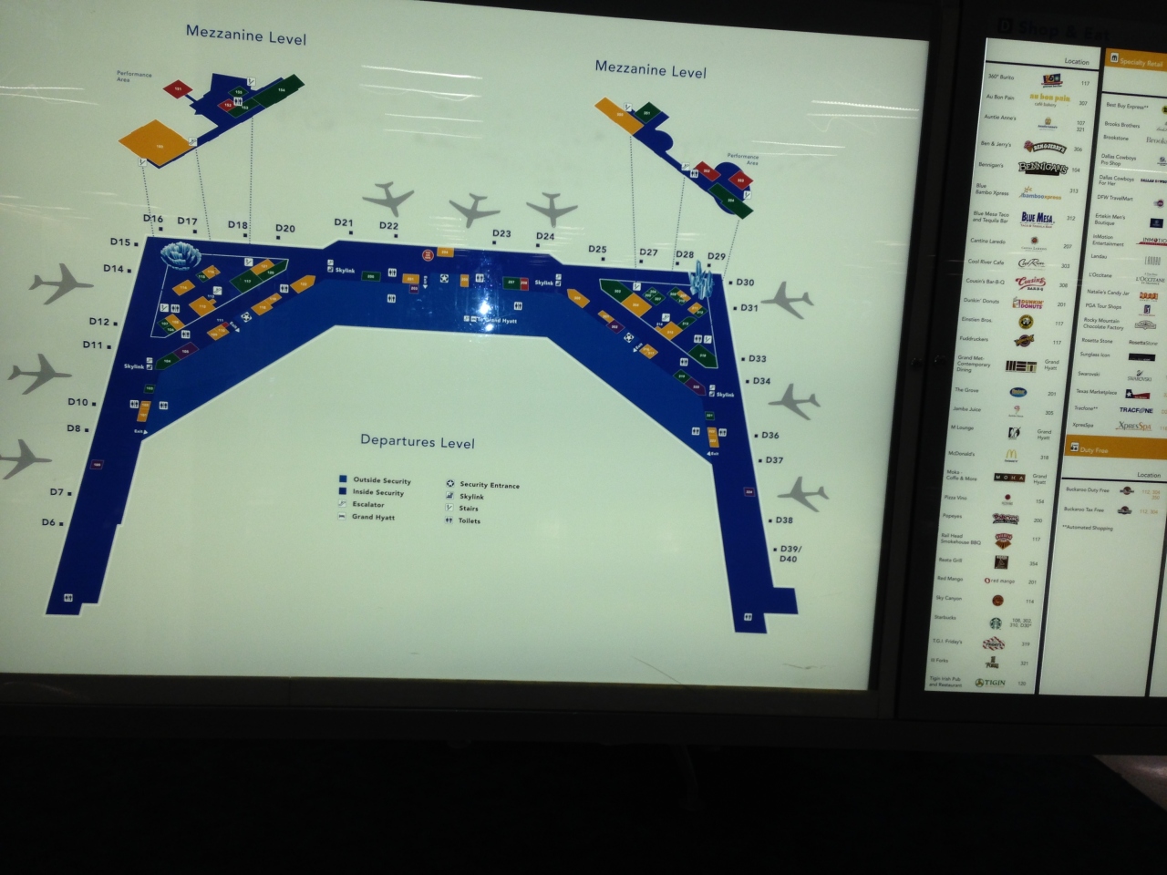 ダラス、フォートワース空港は、アメリカン航空、ワンワールドのアメリカ南部のハブとなる役目を果たし、ターミナルを5つ抱える巨大な空港です。各ターミナル間は、スカイリンクという乗り物(新交通システムの様な乗り物)で移動する事が出来ます。各ターミナル間を環状につないでいます。