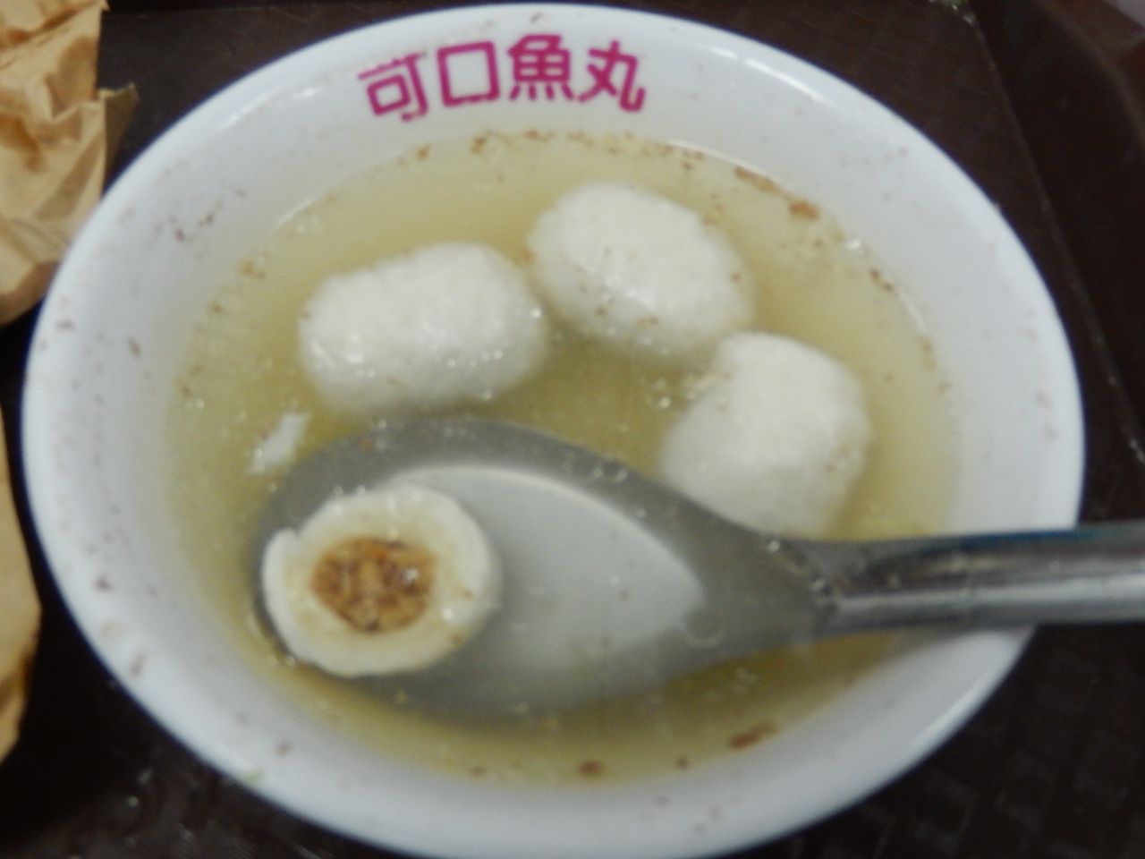 淡水老街にある40年以上の歴史をもつ魚丸湯の有名店。あっさりした薄味のスープに魚のすり身団子が入っていて、その団子の中には豚ミンチが入っている。老街には他にも魚丸を扱う店がたくさんあるが、ここはいつも混んでいる。安く名物の魚丸湯を味わえるのはいいのだが、店自体はあまり清潔でないのが難点。2階は特にトイレ臭がすごくていつも長居できない。