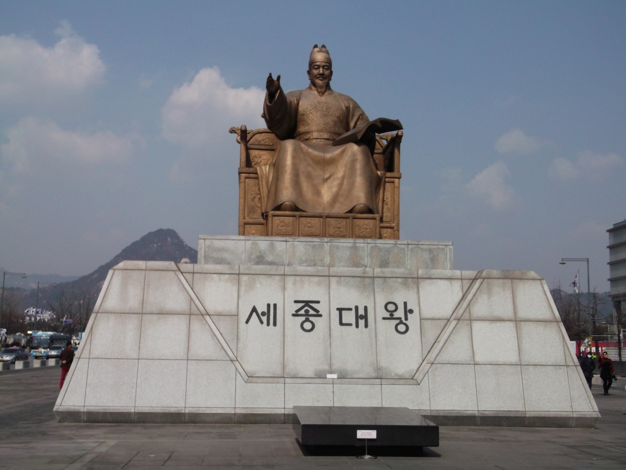 朝鮮王朝第4代王、世宗大王の銅像があります。