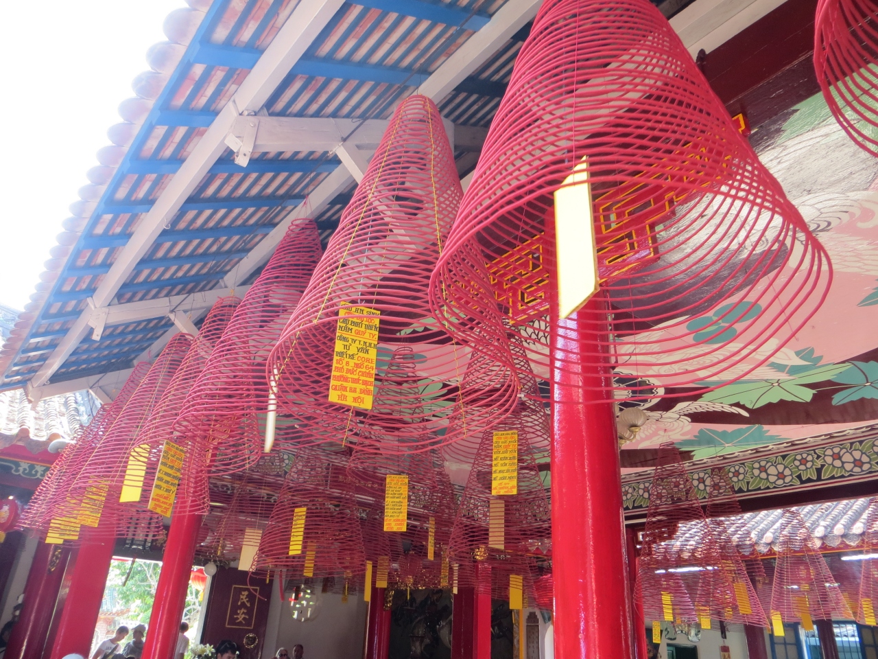 福健會館は中国式のお寺です。この寺の特徴というか面白かったのは、天井から渦を巻いた大きな線香がたくさんぶら下がっていました。最初はその赤い渦巻きが何なのか分からなかったのですが、線香の匂いと煙が出ていたのでそれでやっと線香だと分かりました。規模も大きなお寺で参拝客もたくさんいました。