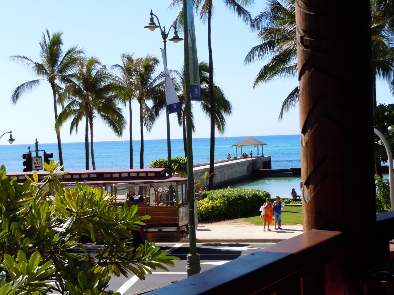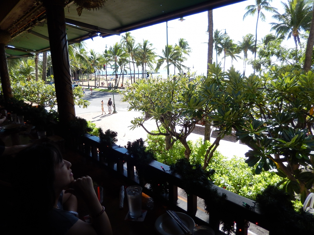 店自体が建物の2階にあるので、カラカウア通り越しに眺めるクヒオビーチは、それこそハワイに来たんだと実感させてくれる風景である。