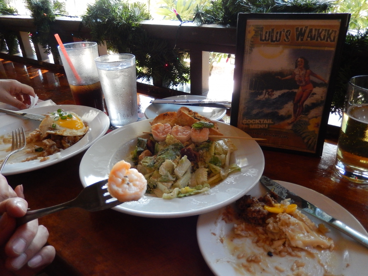 この時の利用では、ダイヤモンドヘッド登頂から下りてきたばかりのランチタイムだったので、とにかくビールが旨くて、気分も最高の窓側席でゆっくりと食事を楽しむ事ができだ。