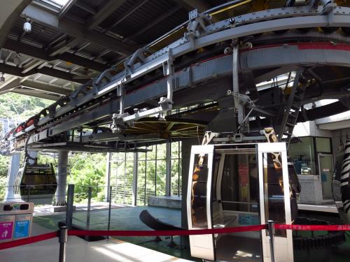 ロープウェイの建物の入り口の脇に、切符売場があるので、切符を購入する必要がある方はそちらで切符を購入します。悠遊カードを持っている方は悠遊カードの利用ができるので、切符の購入の必要はありません。私たちは悠遊カードを利用することにして、そのまま上に上がって行きました。乗り場は上の階、確か3階くらいだったと思いますが、階段を上っていきます。足に自信のない方にはエレベーターもあります。