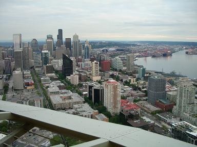 まだ明るい夕刻に訪れて友人とおしゃべりしながらゆったり過ごしたので、昼間の景色と夜景とを両方見ることが出来ました。もし時間があれば、みなさんにもお勧めの過ごし方です。展望台からの景色はとても素晴らしく、シアトル観光の中で絶対外すべきではないと思います。