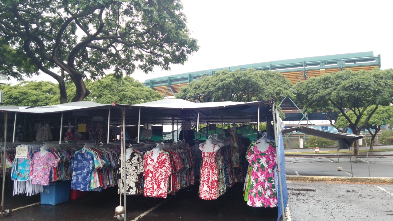 蚤の市のようなアンティークやガラクタっぽいものもでているのかなぁと期待してたのですが、アロハシャツやTシャツ民芸品といったお土産物のテントしか見つけることが出来ず私にとってはちょっと残念でした。