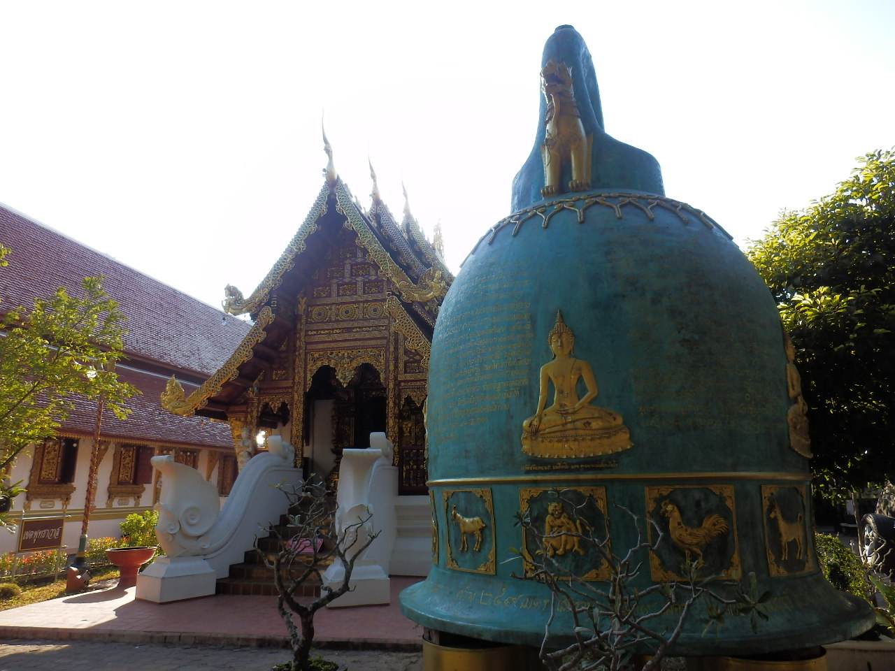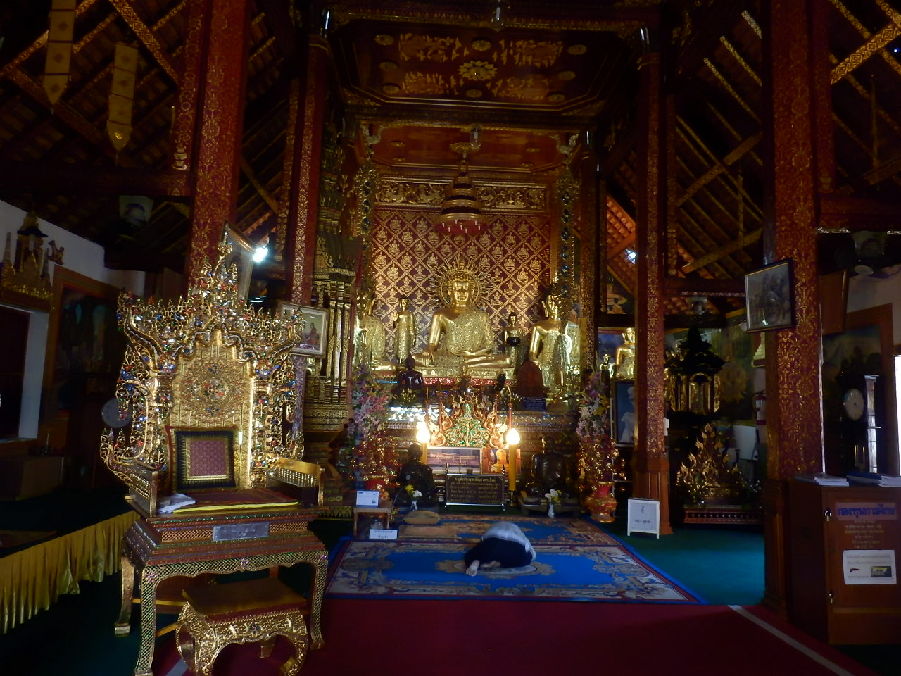 14世紀に建てられた古いお寺のようですが、境内は綺麗な芝生が敷き詰められ、公園のように整備されていました。外観に美しい装飾が施された本堂の中には黄金の仏像が何体も納められていて圧巻でした。本堂の外にも仏像が何体か飾られて、境内には美しい花も咲いていて、散策が楽しいお寺で した。