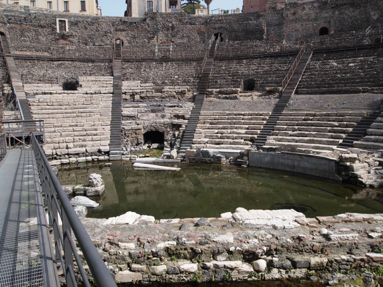 何も知らずに入場料を払い建物の中に入ると、劇場が広がっていました。入り口からは想像できない空間でした。説明の図などを見ると古代の劇場の上に家を建てて住んでいたということらしいです。その家の中も見学できるようになっていて、少し前の暮らしを見ることができます。オデオンの方へ行ってみましたが、いまいち形がわかりませんでした。入り口とは反対側の坂の上に登ると、劇場があるなということがわかります。