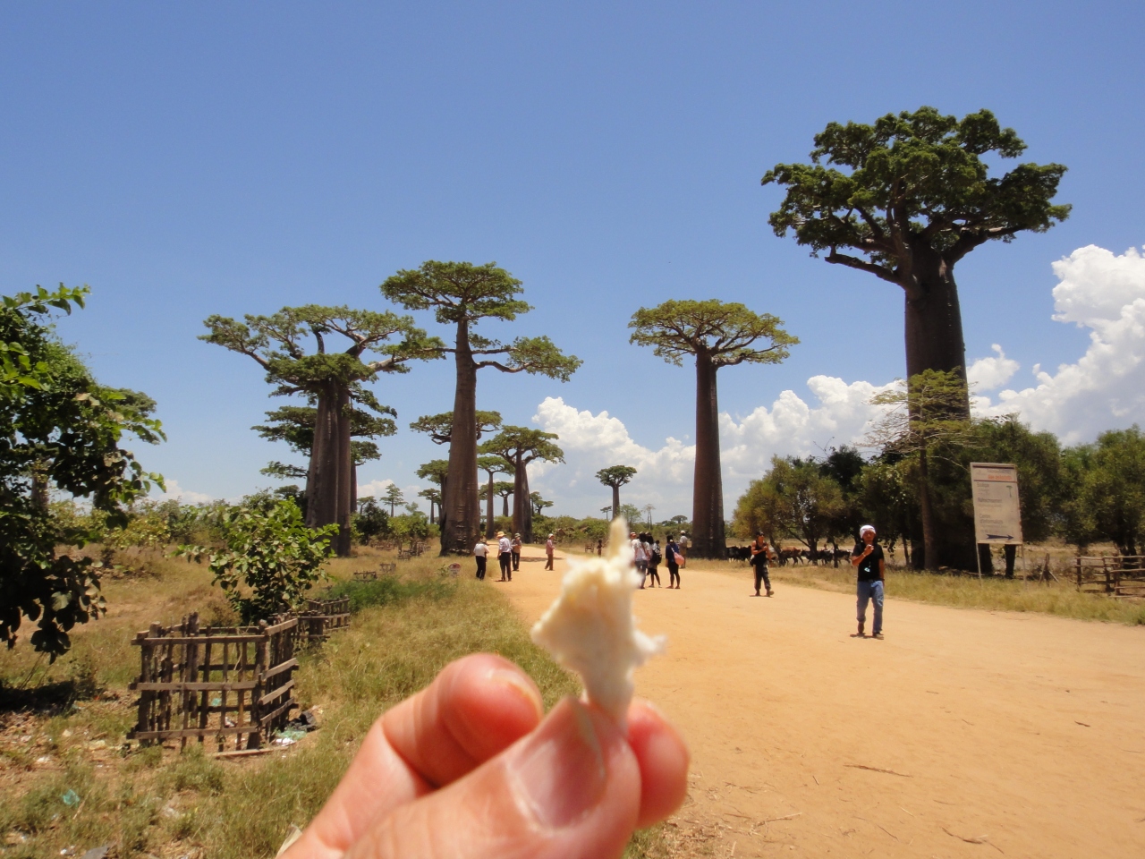 ・バオバブの実は、割るとふわっとした綿のような感じで、ほのかに甘い味がしました。