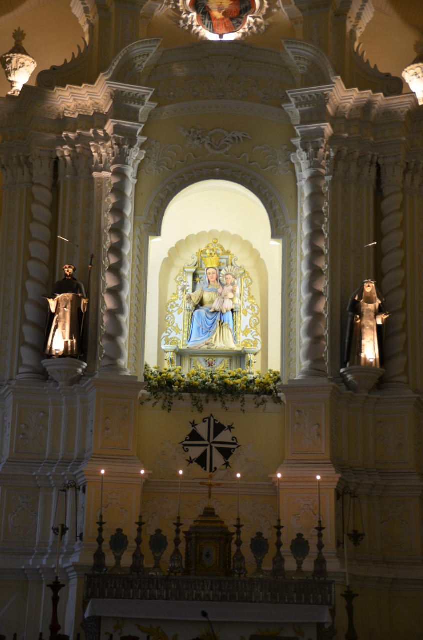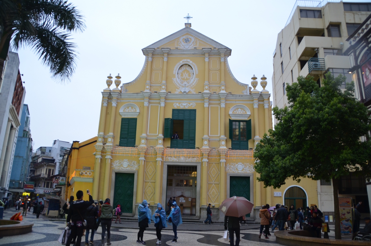 世界遺産に登録されたマカオ歴史地区の、聖ポール天主堂から坂道を下ってくると右手に見えるクリームイエローの壁に白い漆喰の装飾が印象的なファサードを持つ小振りな教会。内部は意外と広く、聖壇のキリストを抱くマリア像はカラフルでリアル。