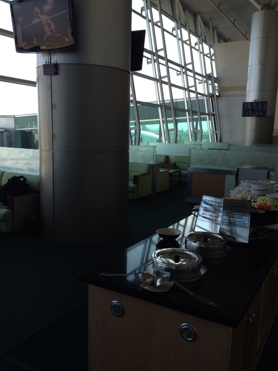スターアライアンス系が利用しているラウンジです。ベトナムらしく、フォー、生春巻き、揚げ春巻きが置いてあります。受付にwifiのパスワードが印刷された紙が置いてあります。意外とサクサク繋がり、動画再生も問題ありませんでした。