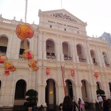 仁慈堂大樓の外観は、セナド広場の色合いにマッチしていて、