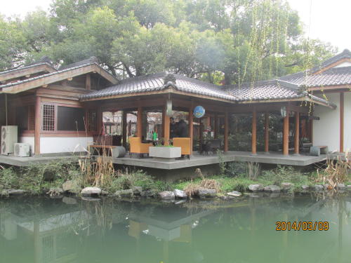 岳王廟の前にあるのが西湖十景の一つ曲院風荷です。蘇堤と楊公堤の間に挟まれた湖水の中の庭園です。湖水を利用して蓮の名所に成っています。とても大きな庭園で園内にはたくさんの蓮が植えられている。蓮の見ごろは7、8月頃。ここでも季節が合いません。また静かな園内にはスターバックスを始め多くの茶館もあり、のんびりと龍井茶を楽しむこともできます。