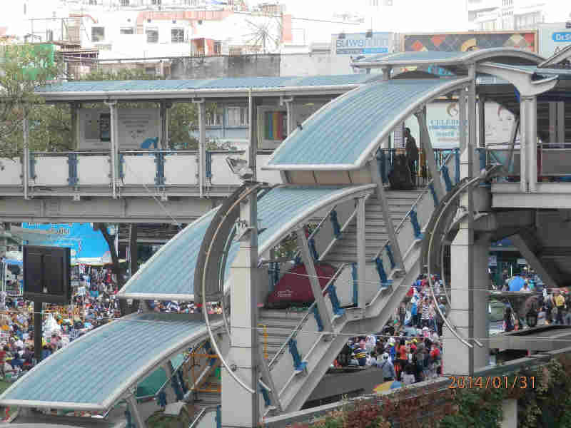 「プロンポン」−「国際競技場」まで券売機なら34b。駅前のBACCバンコク・アート・カルチャー・センター。空間でさえ芸術という感じ。無料で観光できる美術館はシャッターが降りてる。占拠されてる。