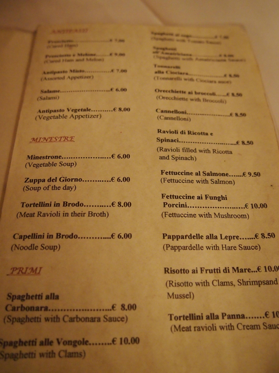 ナヴォーナ広場の近くのこじんまりとしたイタリアンレストラン