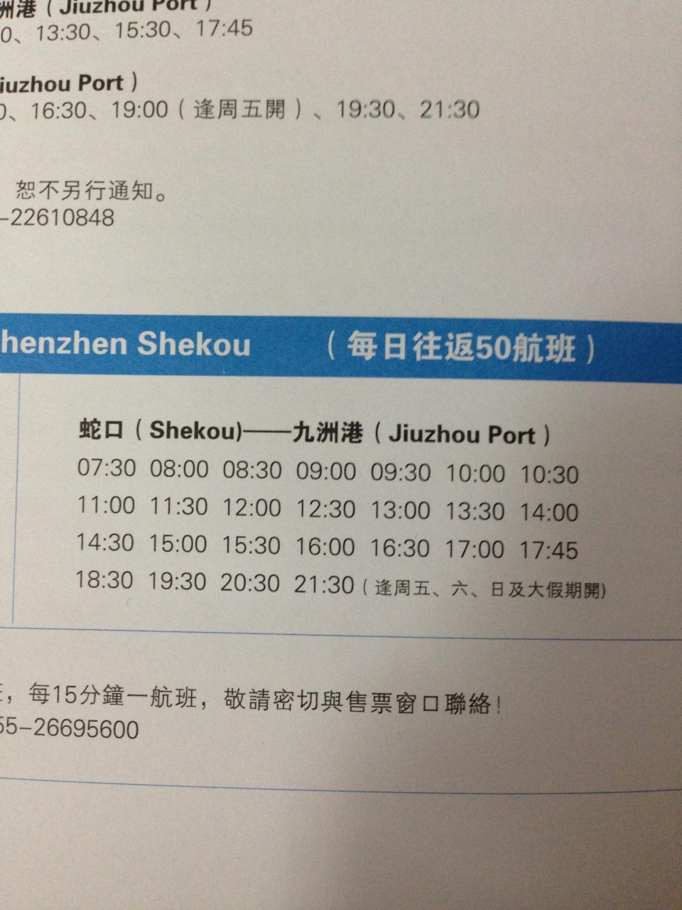 羅湖から蛇口港駅まで地下鉄で50分ほど。駅から港までは歩いて5分ほどです。