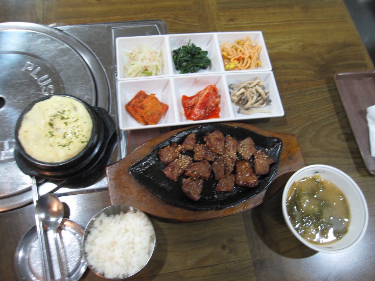 店員さんの対応も良いとの口コミを見て初めて利用。明洞にありますが、ビルの3階にあり場所がちょっとわかりづらくて暫く探してしまいました。平日の夜でしたが、まだ空席もあり1人でも問題なかったです。注文したのはテジカルビの定食(W10000)おかずも多く、ボリュームもそれなりにあって満足でした。1人ということもあり、ちょっとドキドキしましたが、店員さんも感じが良くて優しかったです。