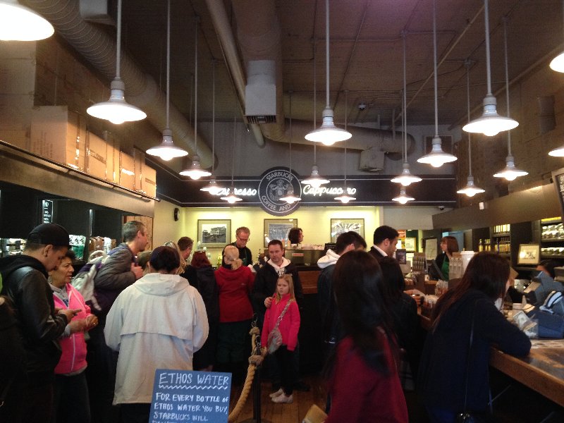 シアトルに来たら外せない、スタバ1号店。混んでます。