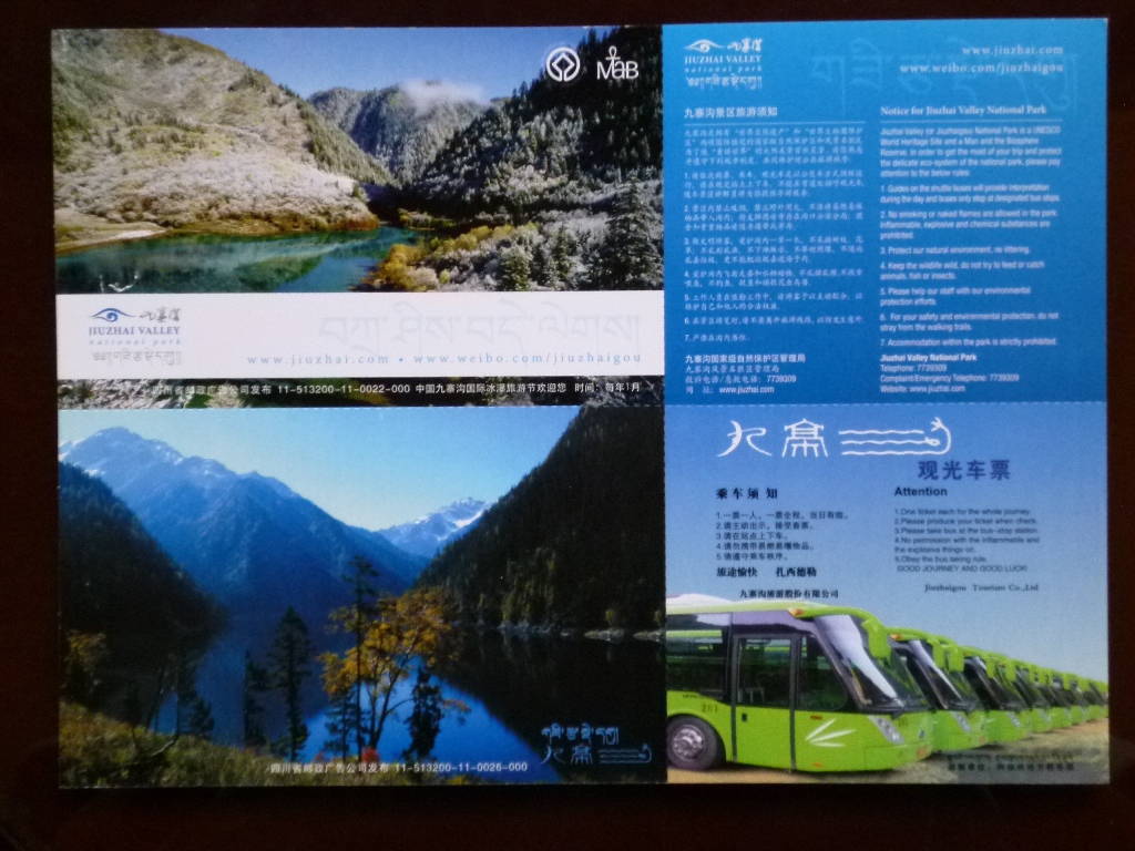 九寨溝内はものすごく広いので循環バスを利用しないと回れませんね。何処で乗っても降りても、90元で乗り放題なので良いのですが、小雨にもかかわらず満員、中国独特の匂いもチラホラ。高額な入園料なので循環バスは無料にしてほしいです。