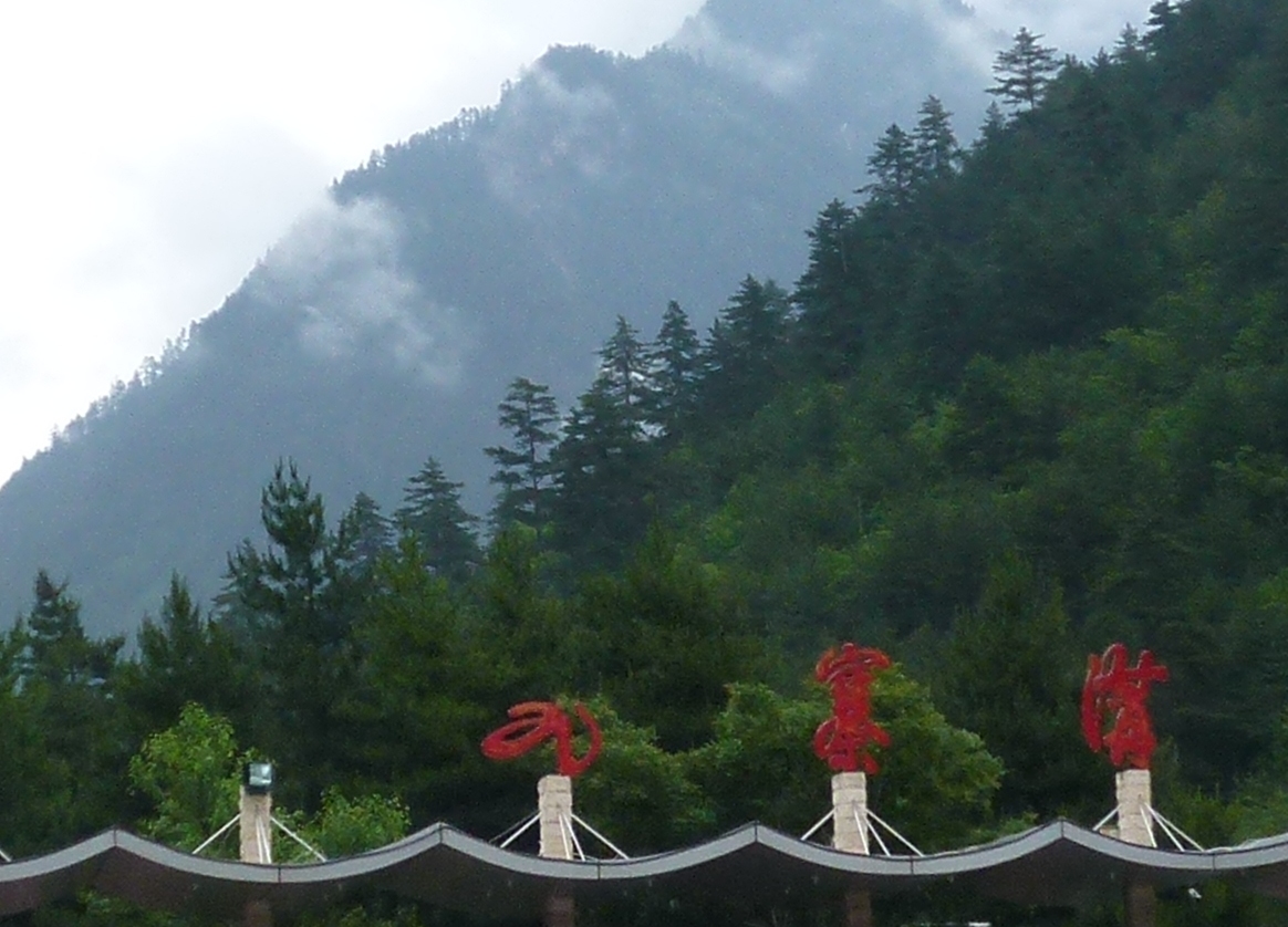 「箭竹海」で循環バス下車し、「熊猫海」「五花海」~、どこ見ても、エメラルドグリーンと緑深い森林で自然がいっぱいです。今日の天候は曇りのち雨ですね。雨雲が手に届くようです。雨降るなよ、と願うばかりです。