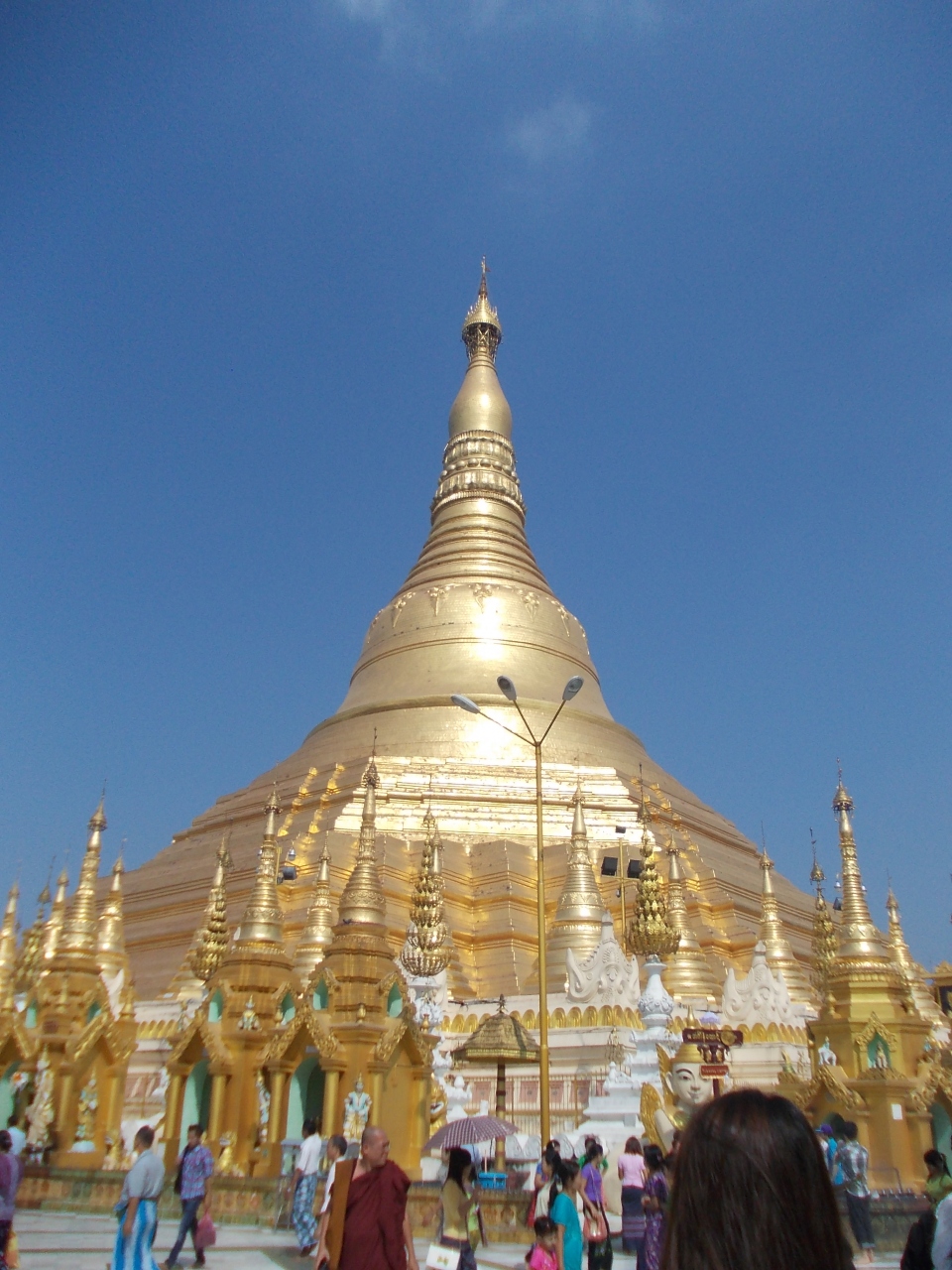 オプショナルツアー(専用車)に参加し、こちらにいきました。定番の観光名所でガイドブックにもありました。きんぴかで光っています。柱はペンキでぬっているとききました。ミャンマー最大の聖地だそうです。はだしで観光しなければいけないためやけどに注意です。