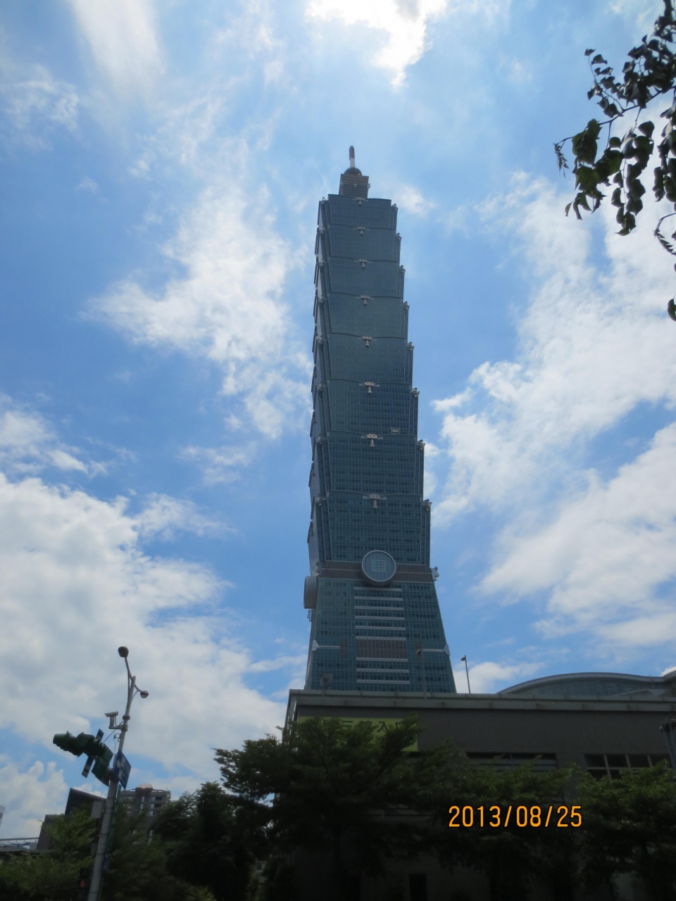 台北市の中心部からちょっと離れている場所にあるけど、遠くから良く見えます。近くに行けば、すごい高い建物という事を実感します。500m超えの建物で周辺に大きな建物がないから余計に迫力と巨大さを感じます。日本のゼネコンが建てたという事なので凄いですね。
