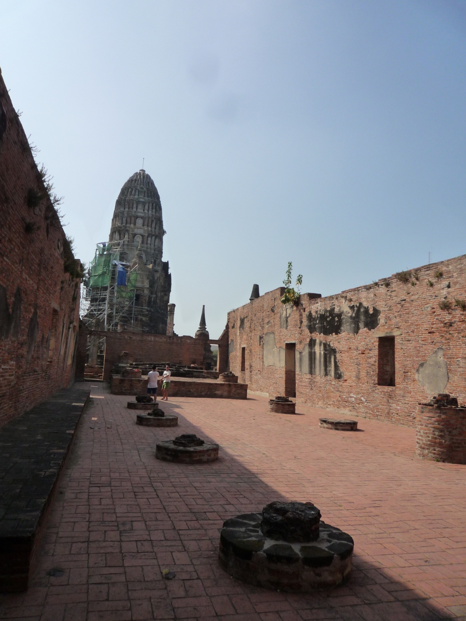 アユタヤで最も有名なワットプラ マハータートのすぐ隣にあるにも関わらず、あまり人気がないようで、ガランとしていた寺院でした。ただ、仏塔は巨大で登ることもできますし、さらに仏塔の地下内部に続く階段も降りられるようになっており行ってみようかと思いましたが、あまりにも階段が急で危険そうだったのでやめてしまいました。