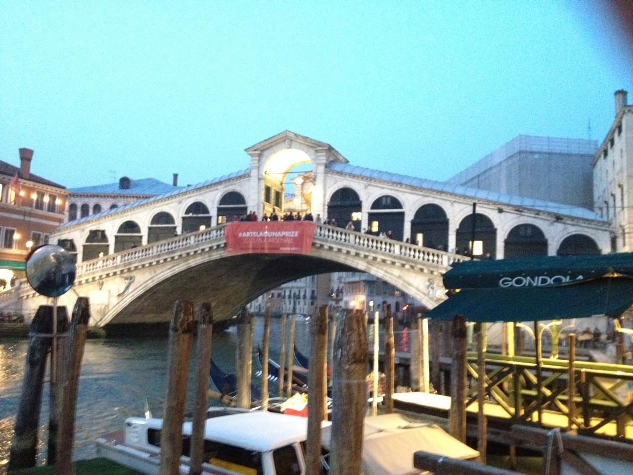 私がベネチアにいた期間はヴァポレットがリアルト~サン・マルコ間が運行しておらず、何度もこの橋を訪れることになりました。橋の真ん中はお店が並んでいてとても賑やかです。夜はライトアップされていて、一段と綺麗でした。
