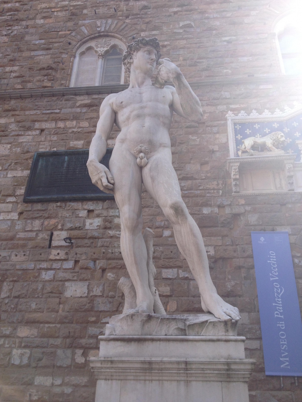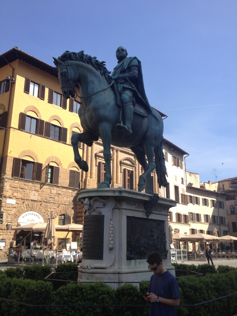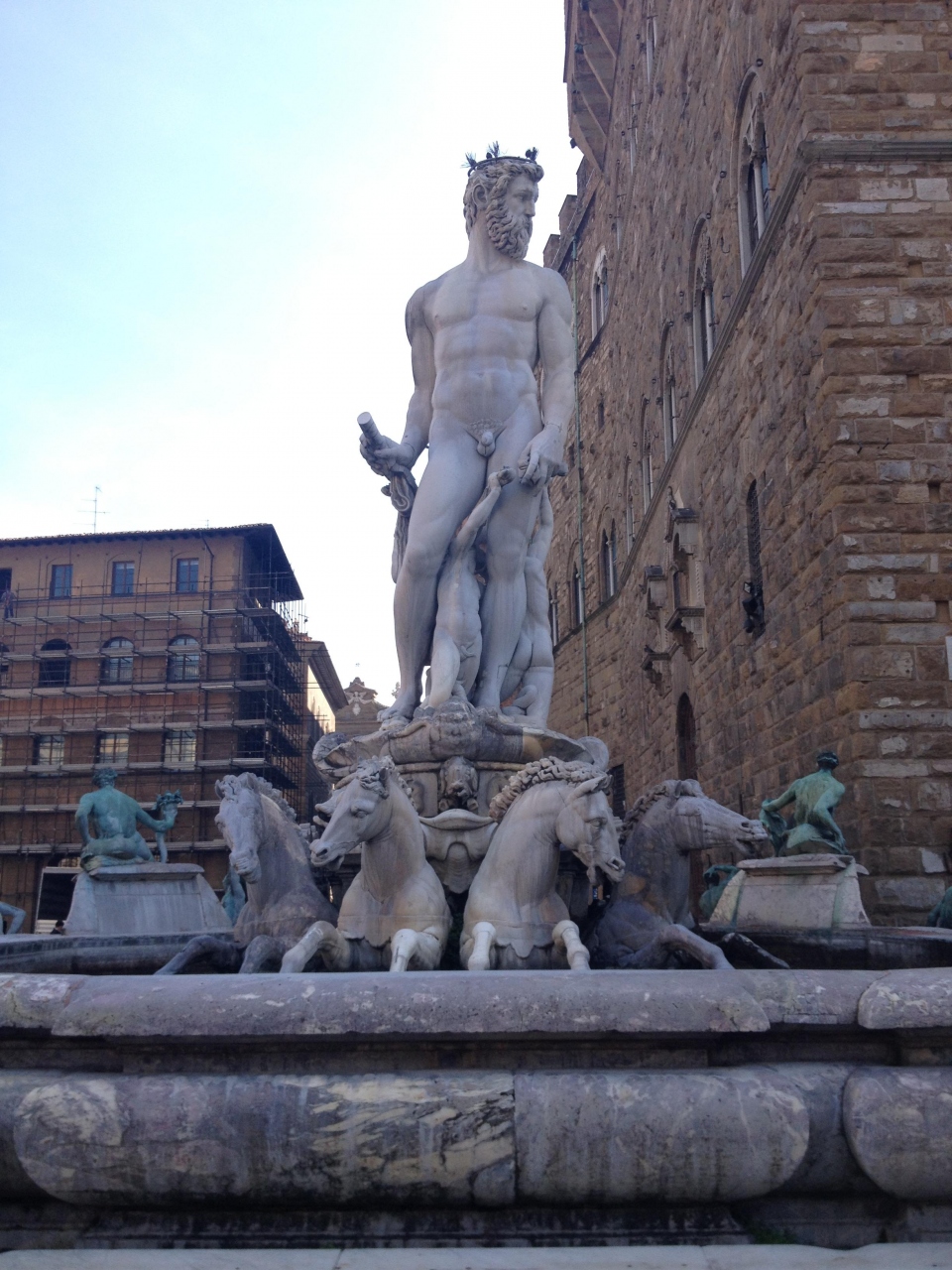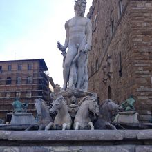 ヴェッキオ宮殿の前にある、石像や銅像がたくさんある広場です。ミケランジェロのダヴィデ像のレプリカもありました。ウッフィッツィ美術館側にも石像がずらりと並びまるで屋外美術館のようです。昼間は多くの人で賑わっていました。