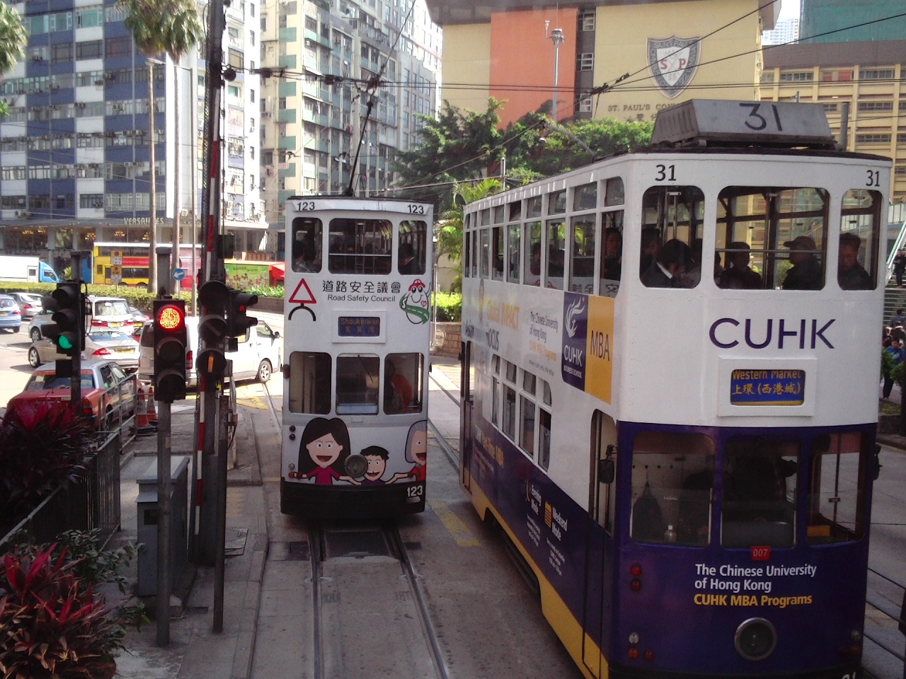すれ違う時や前にもトラムが走って停まった時など