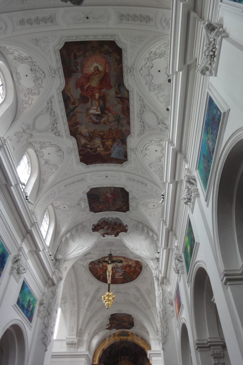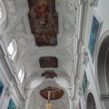 大聖堂の側にあるので合わせて観光することができます。外観のピンクに近い赤壁の可愛い印象に反して、中に入るとすっきりした白基調の内装が目に飛び込んできます。比較的シンプルな装飾なのが却って天井画と白のコントラストを映えさせる気がしました。
