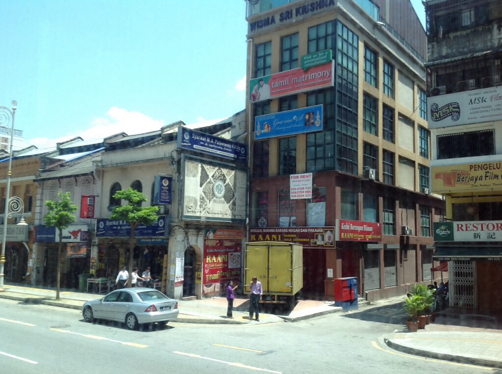 くるくるっと丸まったホルンのような形の街灯が可愛らしい、ブリックフィールズという町にあるインド人街です。