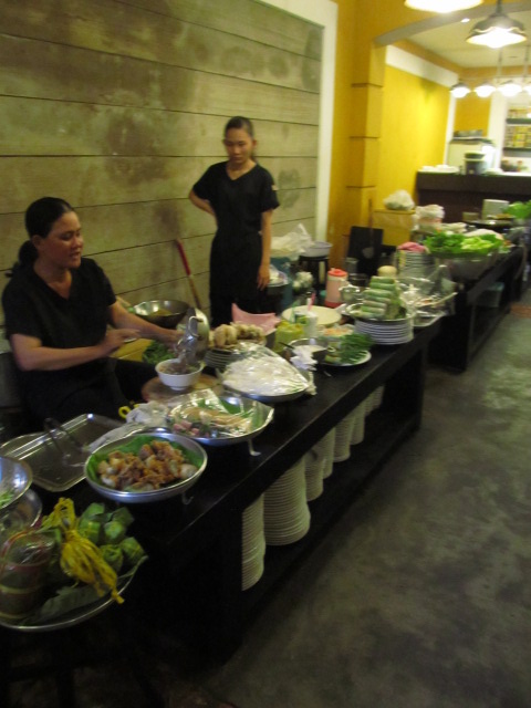 料理のラインナップ、客層といい旅行者向けレストランの代表各と言えますね。なのに値段が意外にもリーズナブルにおさえられていて驚きました。ここ1箇所でガイドブックに載っているベトナム料理のほとんどが網羅でき、便利。かなり広いお店です。グループ客も一人客もいて居心地もいいです。屋台風になっていて調理風景がみられるのも面白いです。