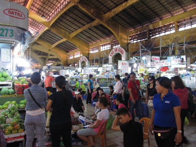 ホーチミン観光で誰もが行く市場だと思います。バスターミナルも目の前だしアクセスは良いです。雑貨に衣類、飲食屋台、生鮮食品と揃っていますが思っていたより大きくはなかったです。残念なのが雑貨関係は買いたい!と思うようなものがありませんでした。お店の数は多いのですがどれも似たりよったり、お洒落な感じのものは少ない気がしました。市場全体はこぎれいにまとまっています。そのせいか面白みが感じられず少し歩いていたら飽きてしまいました。値段交渉はじっくりとすると良いと思います。夜になると外にナイトマーケットが出現します。