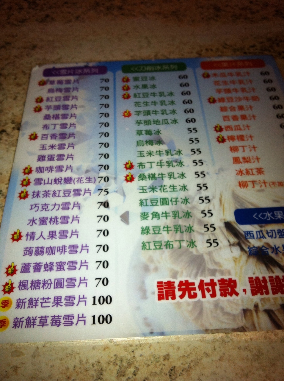 台湾に来たからには、マンゴー食べなきゃ!とゆうことで有名な雪片冰屋さんのこちらに来ました。店内は満席で少し並びました。わたしの後にも続々とお客さんは来てました。