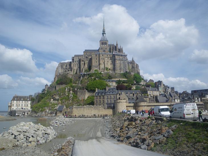 4月30日~5月1日でパリからモン・サン・ミッシェルへ1泊旅行しました。移動にはTGVとバスを利用。バスの車窓から島が見えてきた時には感動しました。昼間はとても混んでいましたが、日帰り観光客の帰った後はとても静か。夜は島のライトアップをただただ眺めているという時間がとても贅沢に感じられました。ただし、長い間外にいると寒かったです。日本の春の服装ではキツイかもしれません。