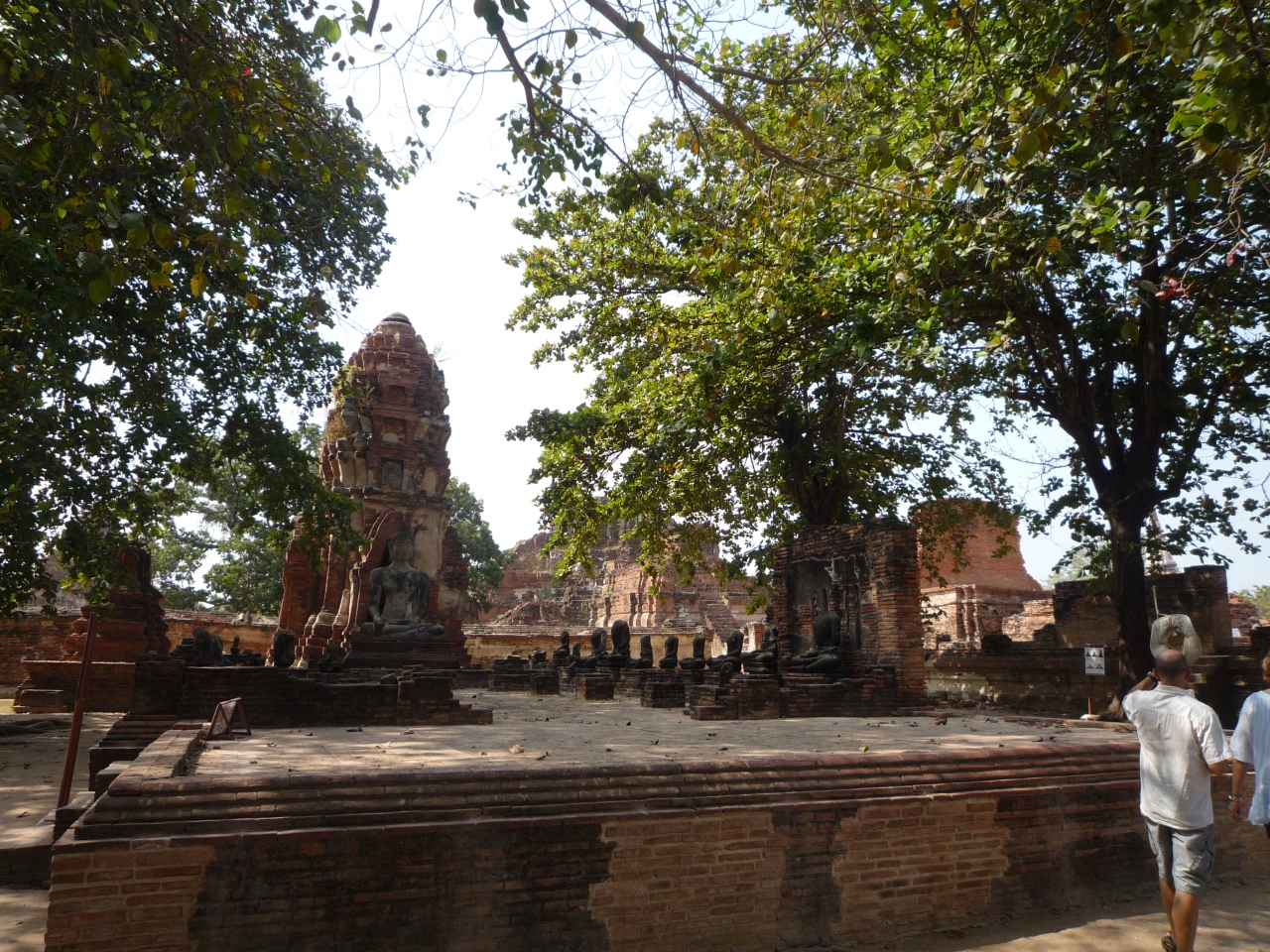 ワットプラマハータートは、仏頭が木に浸食された仏像が有名ですが、すぐその脇に五体すべて破壊されずに残った仏像が置かれています。ほとんど全ての像は頭や腕が壊されているため、このように完全な姿を残した仏像は珍しいようです。ワットローカヤスッター周辺にも五体満足の像があり、そちらもちゃんと管理されていました。