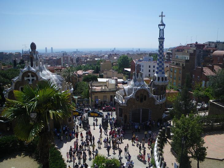 街の中心部から少し離れた場所にあります。バスで行きました。同乗していた買物帰りといった感じのオバちゃんが降りる場所を教えてくれました。さすがに有名な観光地です。そして地元の人が親切です。公園はガウディ建築満載の夢のような所でした。また行きたいです。