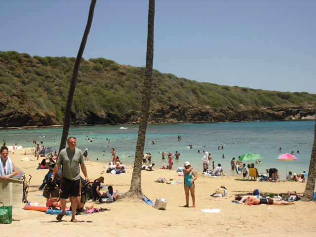 去年の夏に行ったハワイですが、「ワイキキ」という文字を見るだけで、胸が痛くなります。本当に素晴らしいところでした。青い海、白い砂、風にゆれる高いヤシの木…。白い鳥が飛び、飛行機が左上に上っていきます。光がまぶしい、素晴らしい浜辺でした。