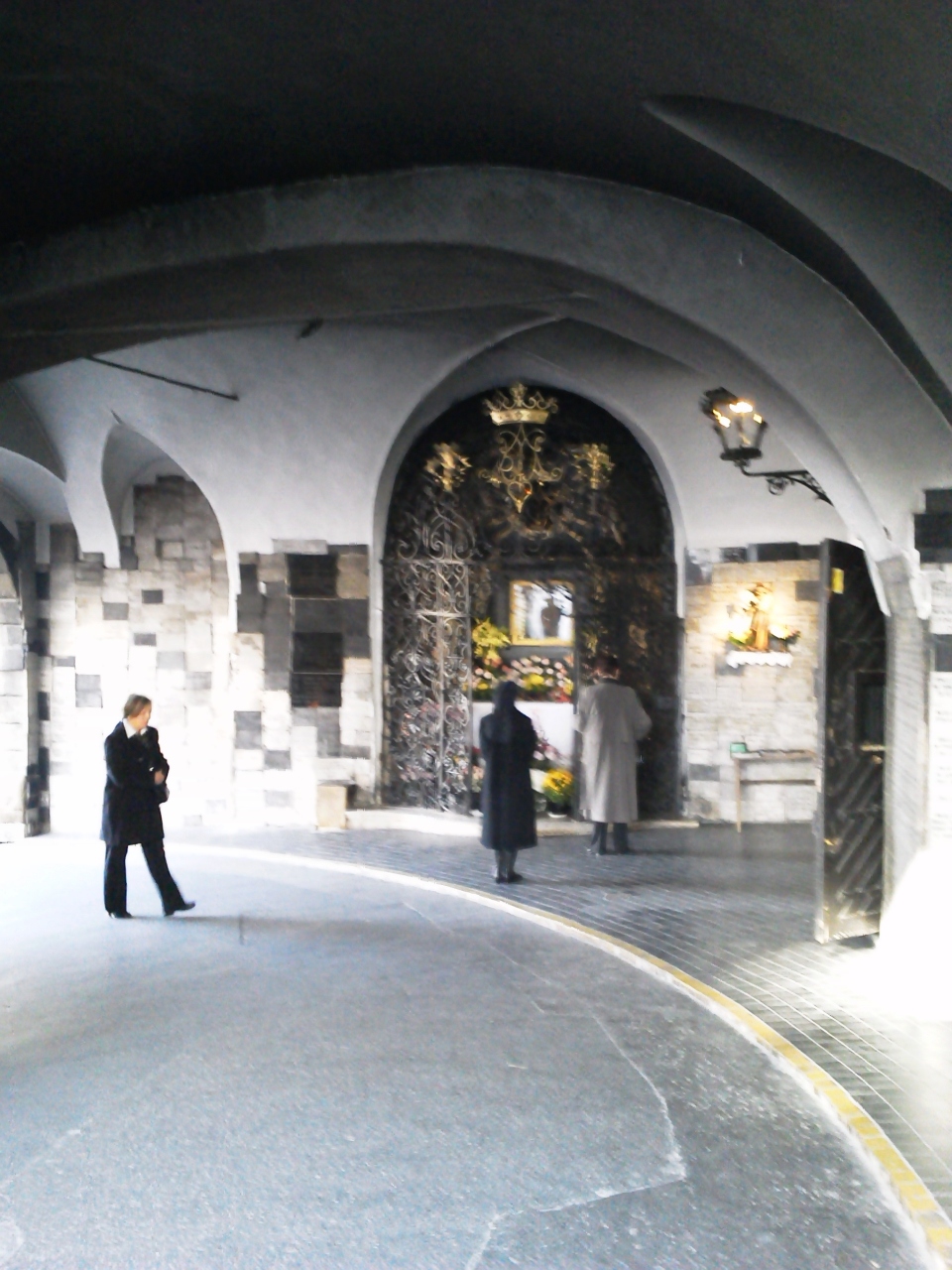 多くの人が祈りに訪れるマリアのイコンがある中世の城壁にあった石の門。