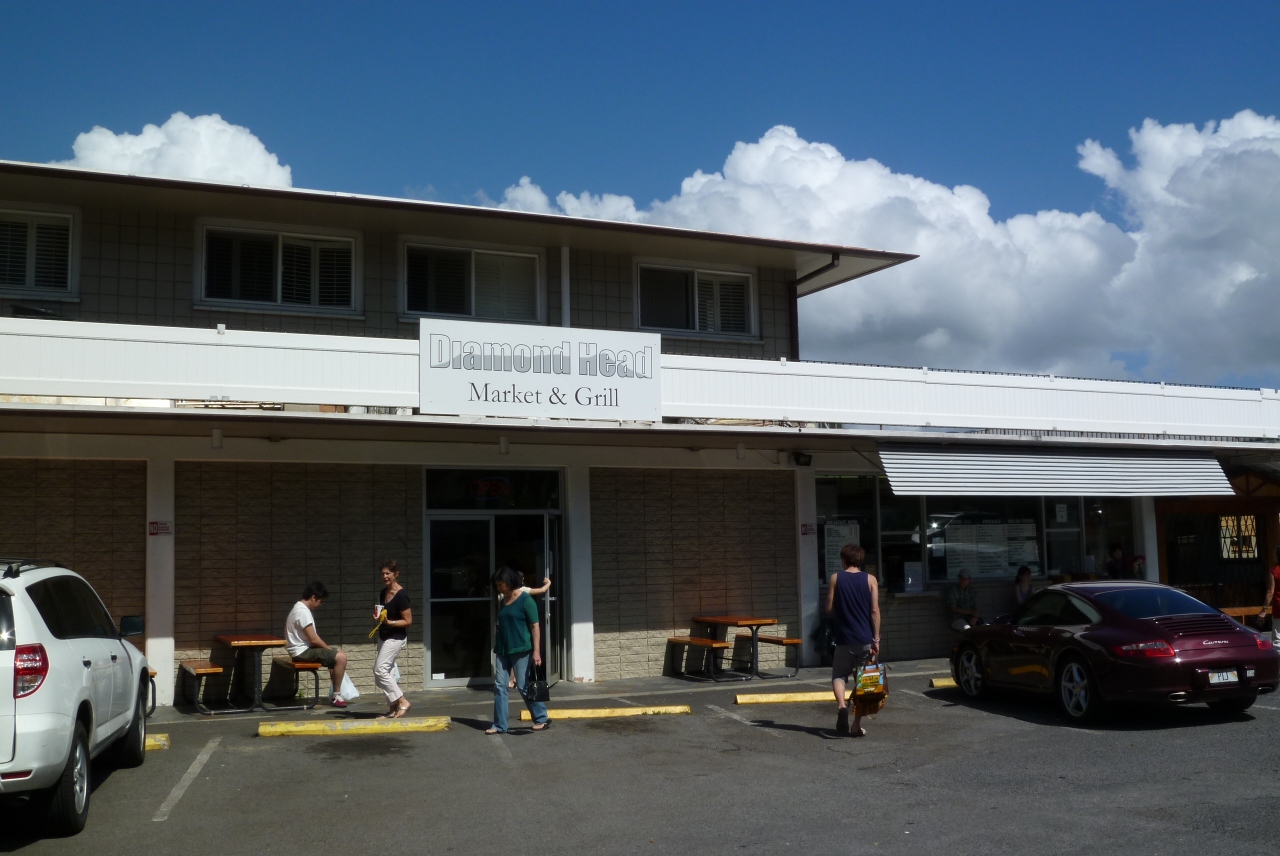 ダイアモンドヘッドを登った帰り、トロリーに乗り、見覚えのある(旅行記で)お店を発見!下車しました。朝食抜きで来たので、遅い朝ご飯。建物の右側が、プレートミール。左側が、スコーンやお惣菜&お弁当等が売っている所でした。