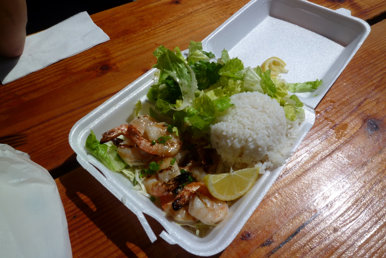 トロリーを降りて、スコーンを買い、ガーリックシュリンプを注文し、外で食べ、そうしたら、次のトロリーがやってきて、それにのって、ワイキキまで帰れました。