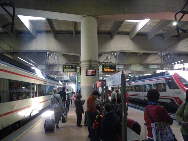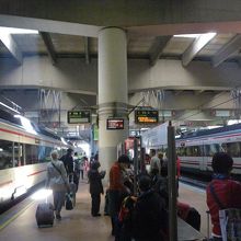 セルカニアスなどが乗り入れています。ホームへは自動改札を通ります。ホームを背にして左手方向にはAVEなどが停車するプエルタ・デ・アトーチャ駅。また、ホームから改札を出て右側に進むと、地下鉄のアトーチャ・レンフェ駅へ。全体として、かなり大きな駅だと思います。