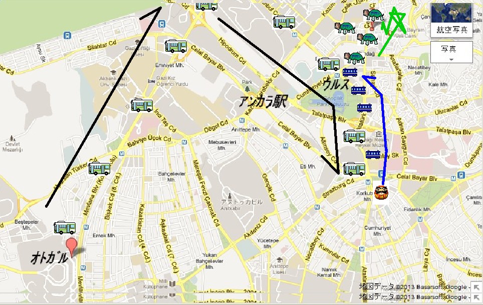 - クズライからウルスまで乗っただけだが、ワンライド2.5リラ(約110円)でどこにでも行けるのはうれしい。
