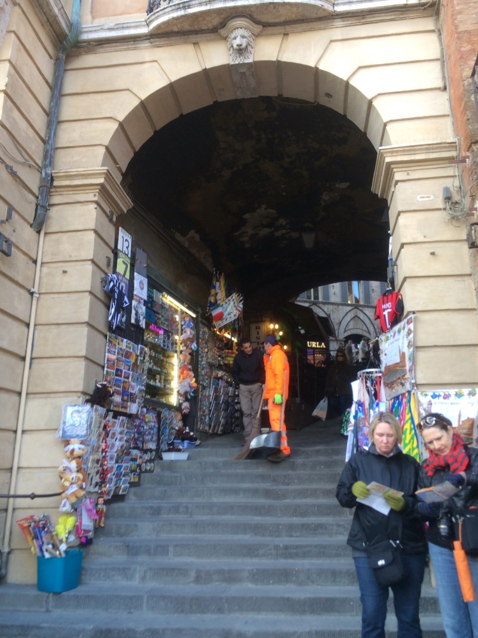 シエナ駅から少し歩くと、シエナの壁に囲まれた小さな町があります。中は住民以外は車の通行ができません。そのため、基本は人が歩いて通行するだけなので、とても歩きやすいです。