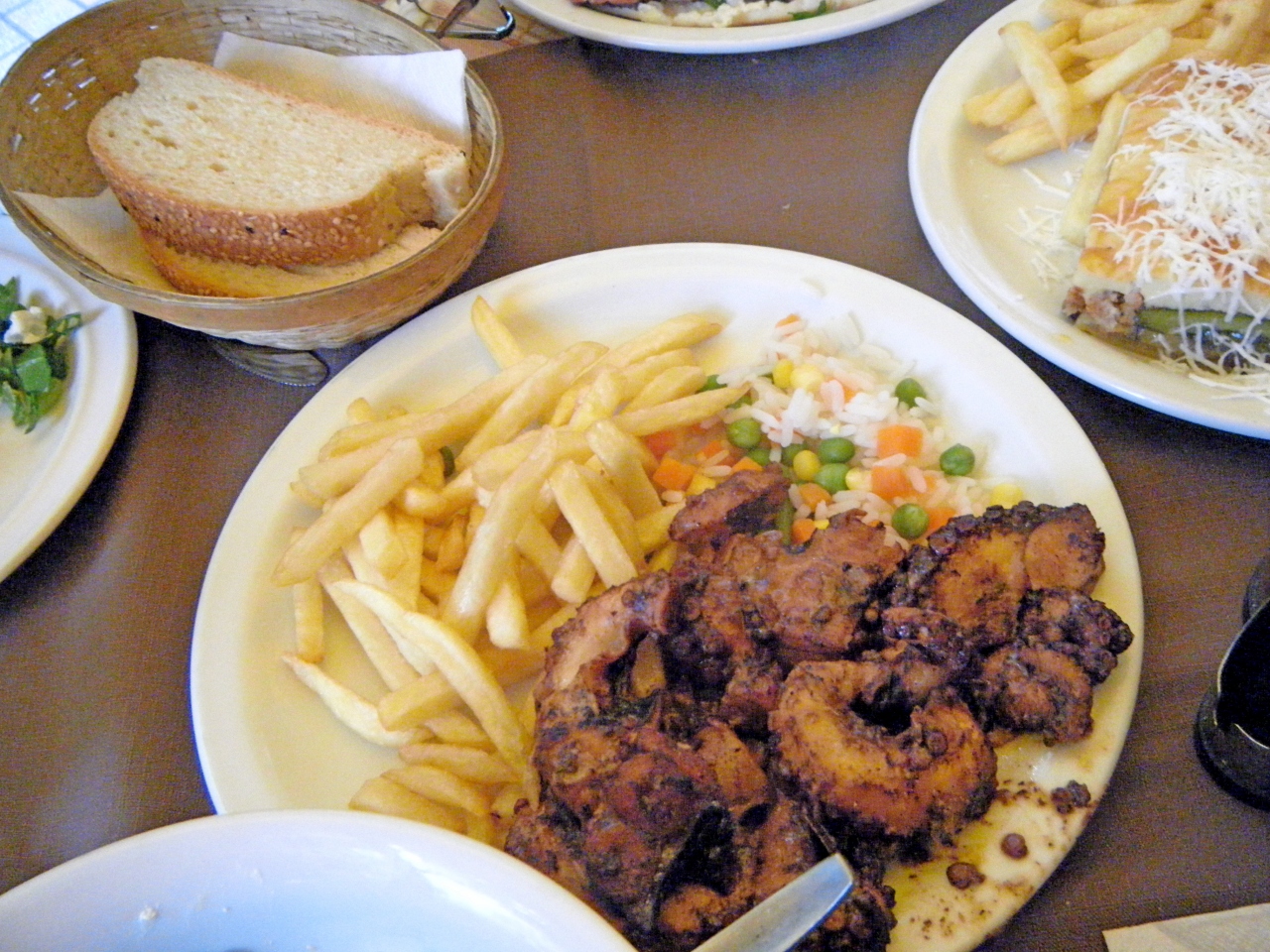 ライキ・ギトニアのレストラン.Ippokratous Strにある.老夫婦でやっている感じだが,ギリシア料理で割とおいしかった.ビール3,グリークサラダ,トマトスープ,ムサカ,タコのグリル,ケハブなどをたのんで43.5ユーロ.ひとり2000円ほど.はいってもいい店と思う.