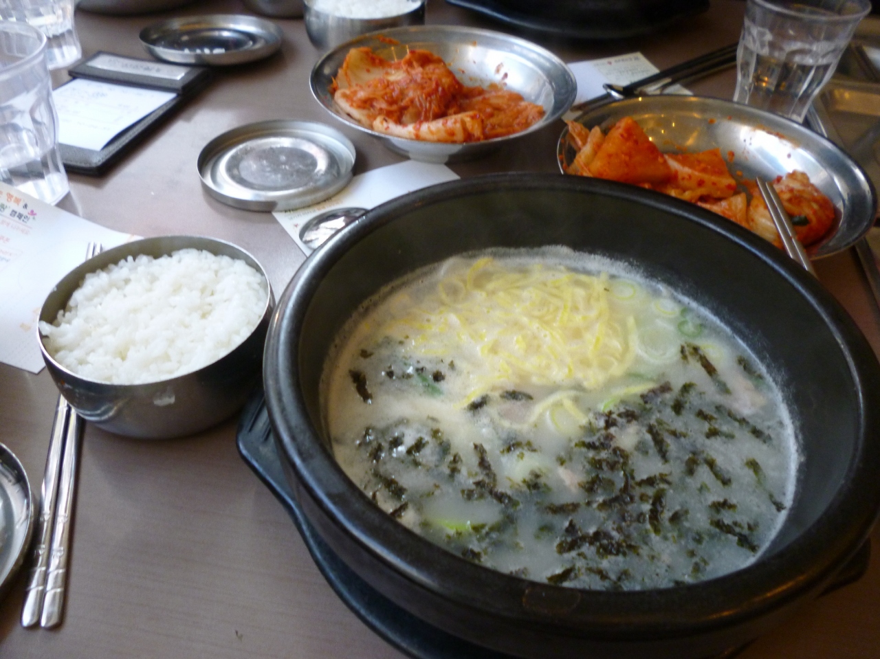 朝食に家族で利用しました。普通のソルロンタンは7000ウォン、お餅の入ったトックソルロンタンは8000ウォンでした。店内は日本人がたくさんいて、店員さんも片言なら日本語が通じます。写真も撮ってくれて親切でしたよ。味は朝にぴったりの味で、しつこくなくおいしかったです。最後はごはんをいれてクッパのようにして食べました。また行きたいです。