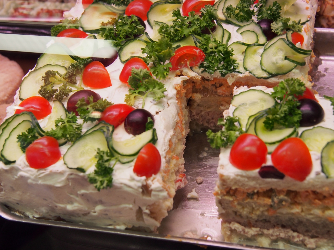 1階は主に食べ物で肉、魚やチーズの専門店、ケーキ類もあります。