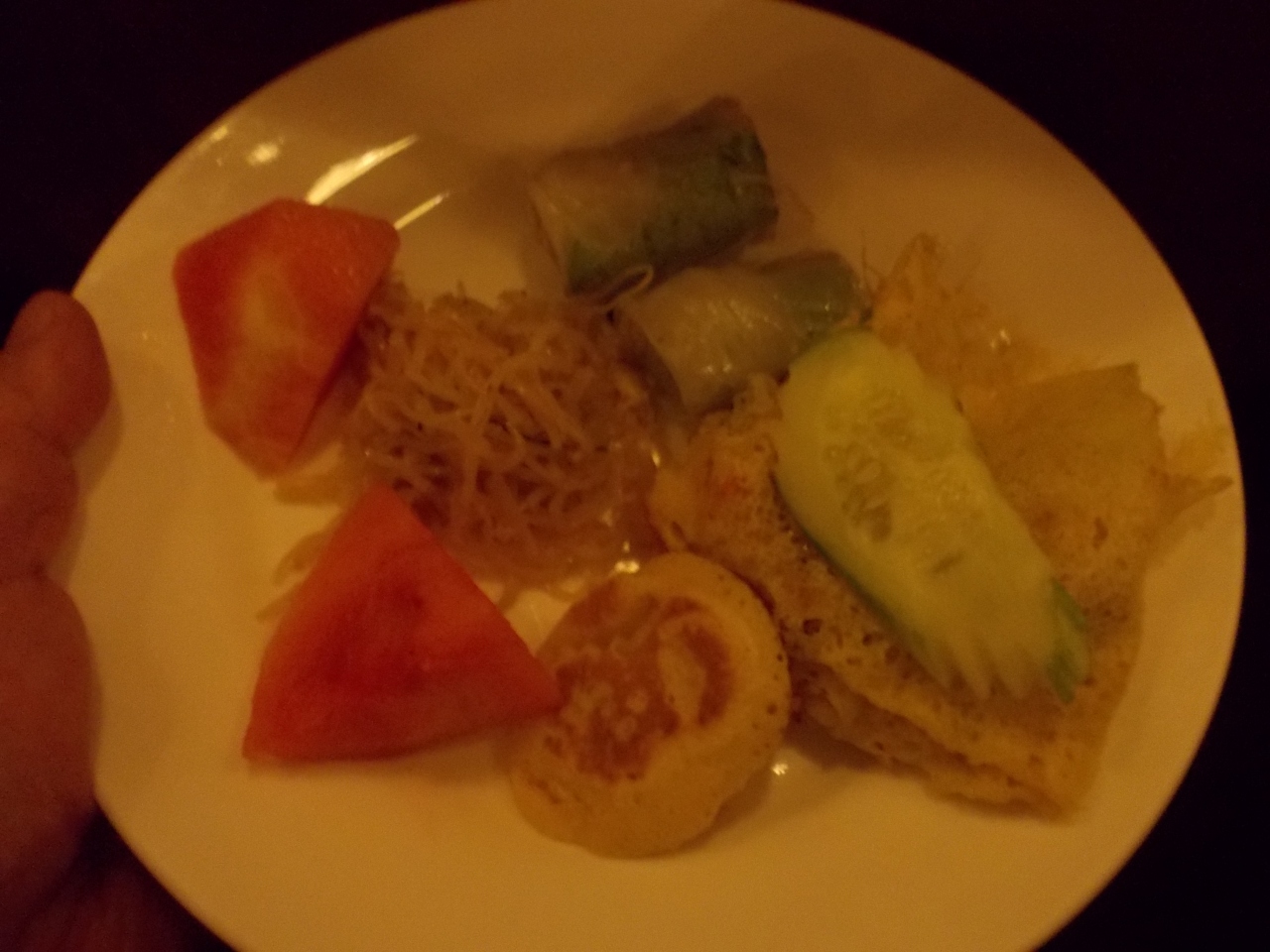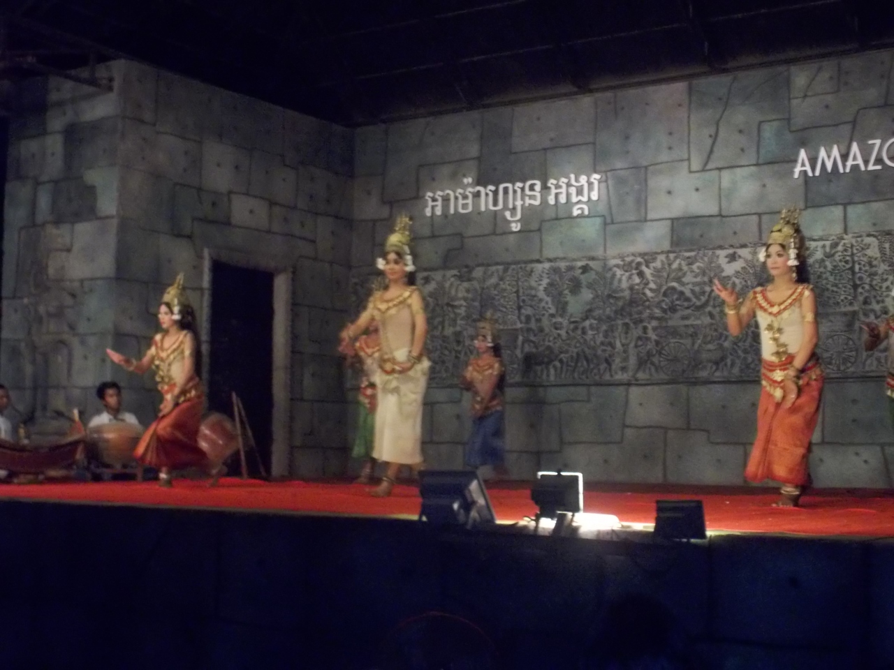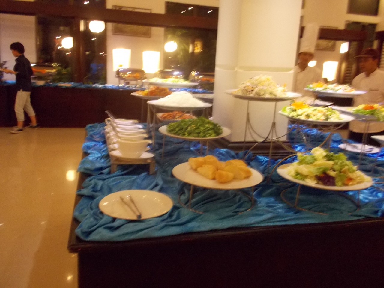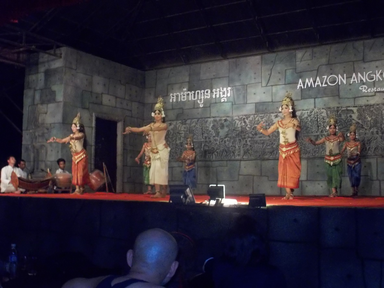 何人の観光客が収容できるのか、わからないが、少なくても数百人は1度に食事が出来るレストランで、肉料理の他にも、野菜やフルーツも豊富で、カンボジアの食事がすべてここに集まっている位、どんな食べ物も、あります。 また、アプサラ・ダンスが素敵で、シェムリ・アップの市内では最高のレストランだと思います!!