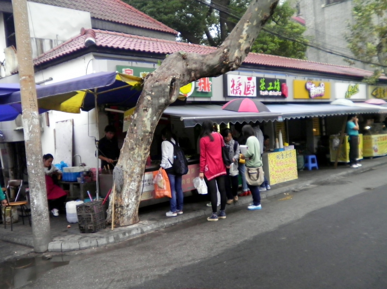 - 十全街を東に進むと蘇州大学南門に突き当たる。その門前一帯が学生食堂街となっている。